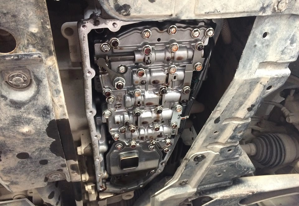 - Демонтаж вариатора. Для этого от коробки отсоединяется приводные валы и все органы управления, затем коробка отсоединяется от двигателя и снимается;